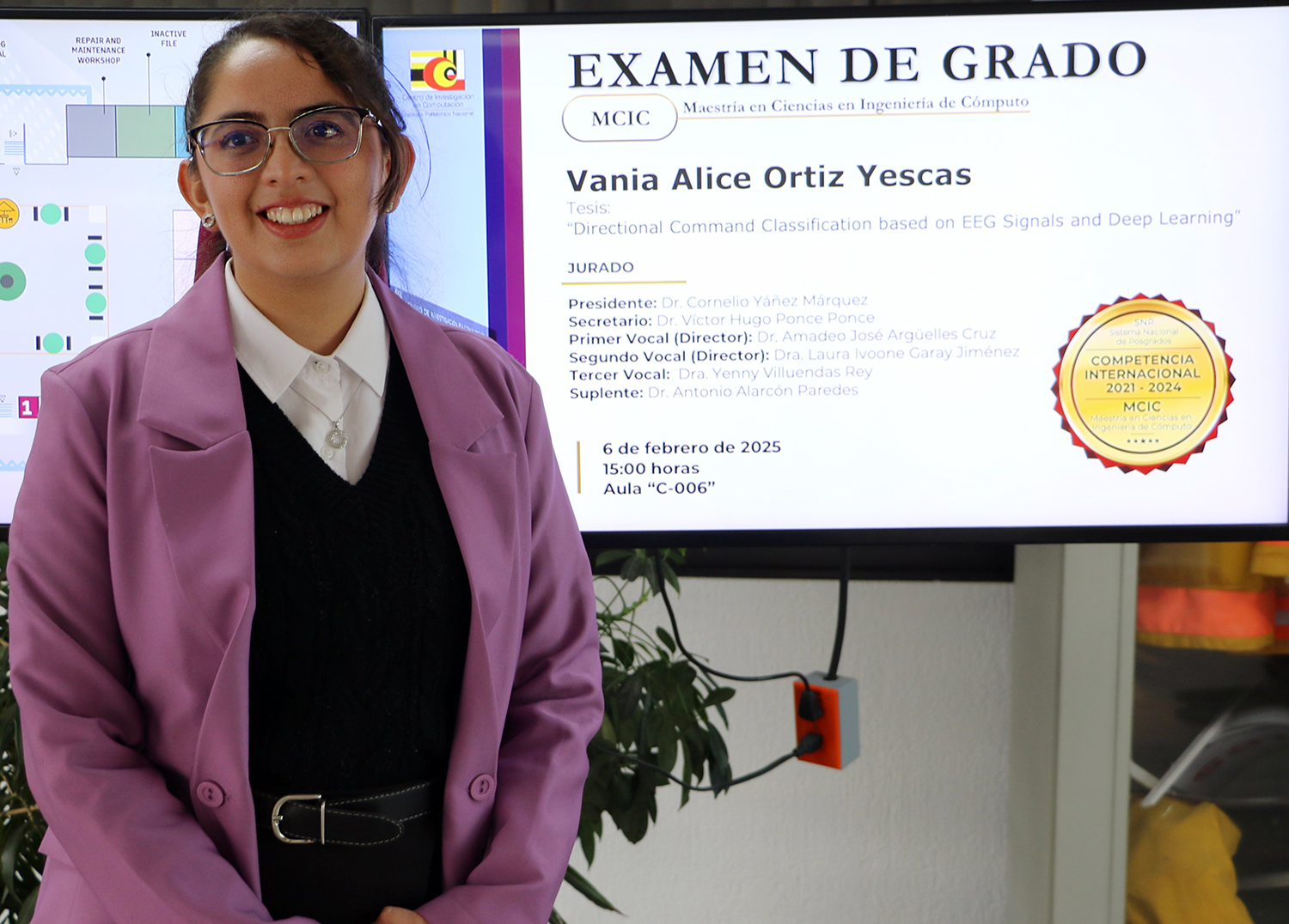 El Centro de Investigación en Computación felicita a la M. en C. Vania Alice Ortiz Yescas egresada de la Maestría en Ciencias en Ingneiería de Cómputo del laboratorio de Cómputo Inteligente.