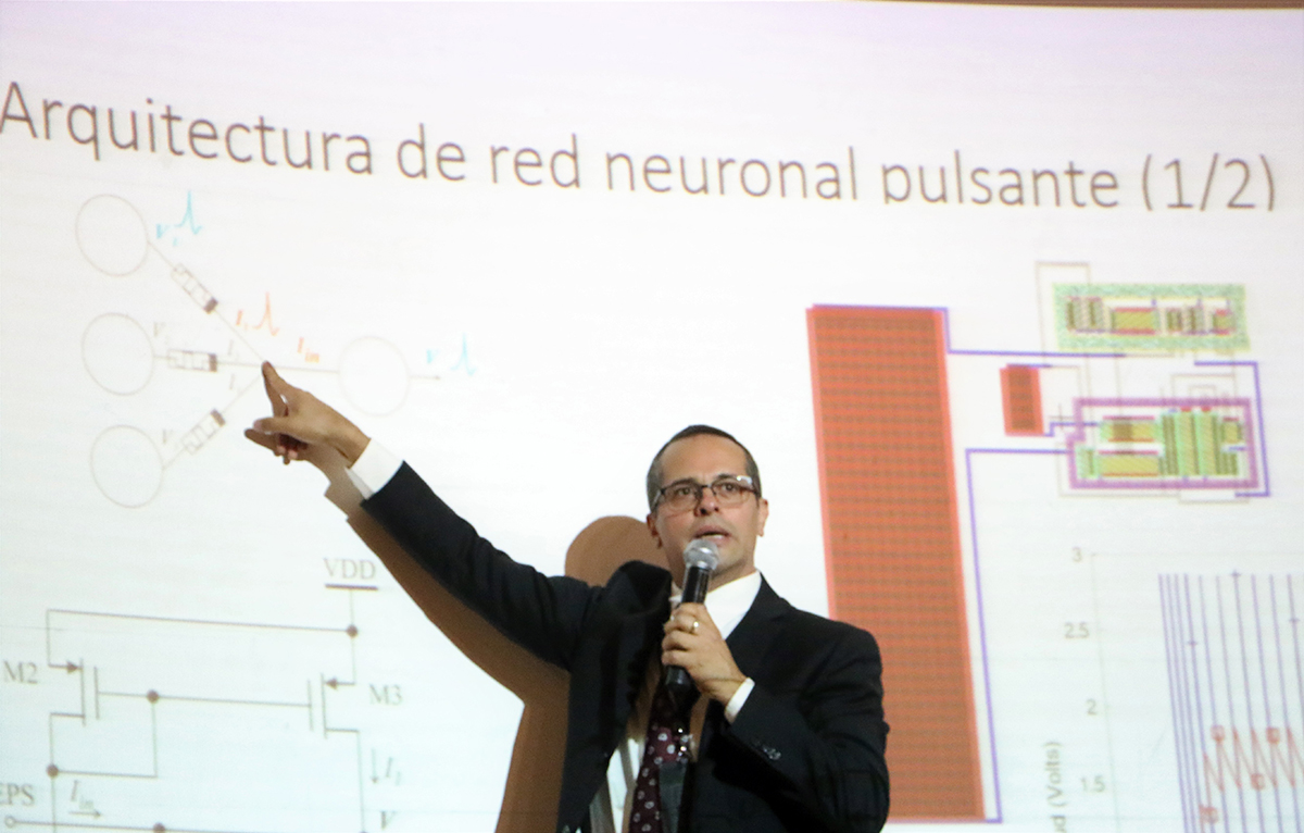 Dentro de las posibilidades de desarrollo y aprendizaje que ofrece la MCIC, el Dr. Ponce expuso la labor que realizan en MICROSE sobre los chips neuromórficos, una de las tecnologías emergentes que será de notable influencia en los siguientes años.